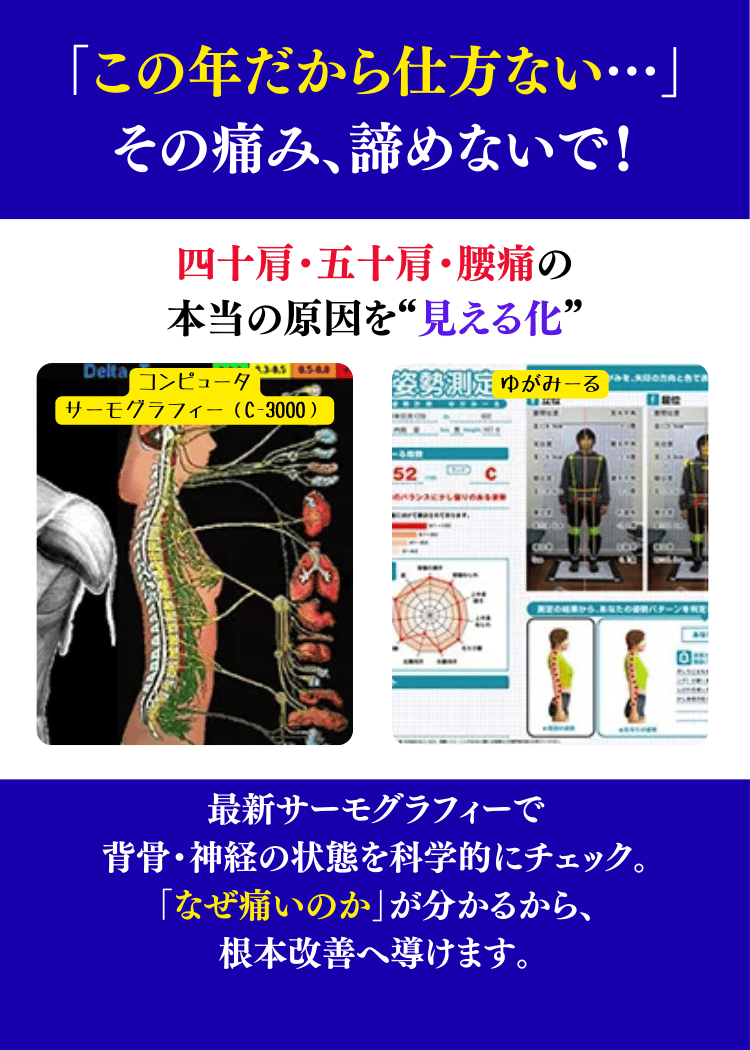 ❌ 何年も腰痛・肩こり・頭痛に悩まされている