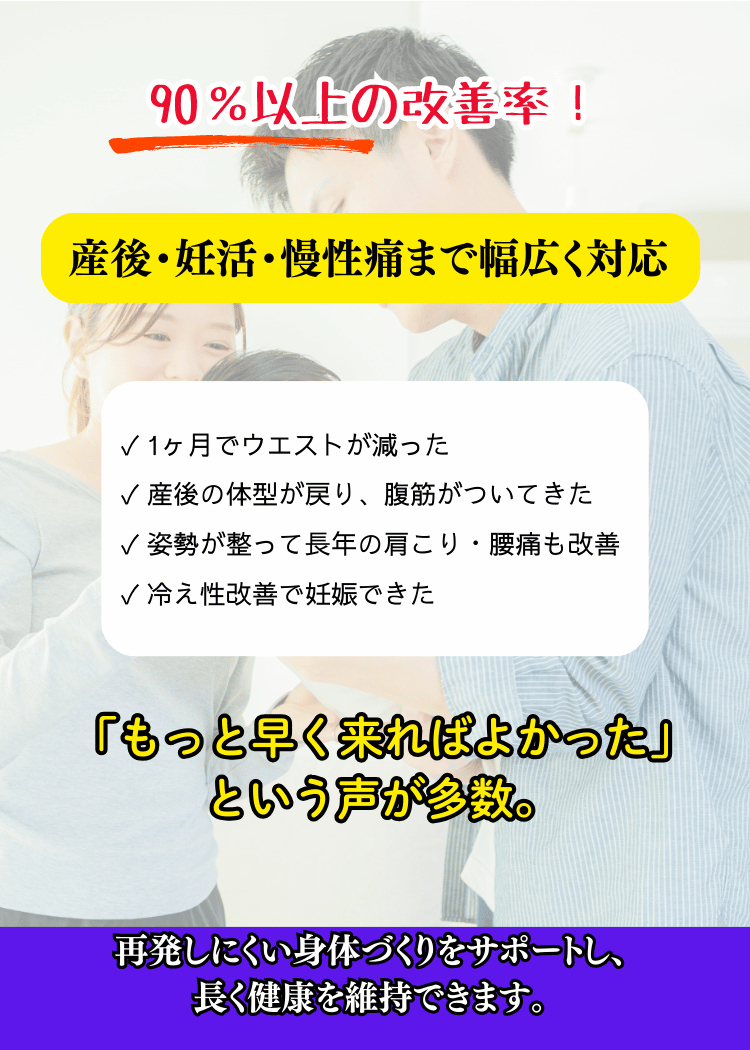 妊娠期の腰痛・産後の体調不良・不妊症・冷え性・生理不順・便秘